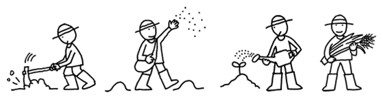4. まいた種を育て「実りを得つづける」ためには、さらに継続的に畑を世話することが必要。